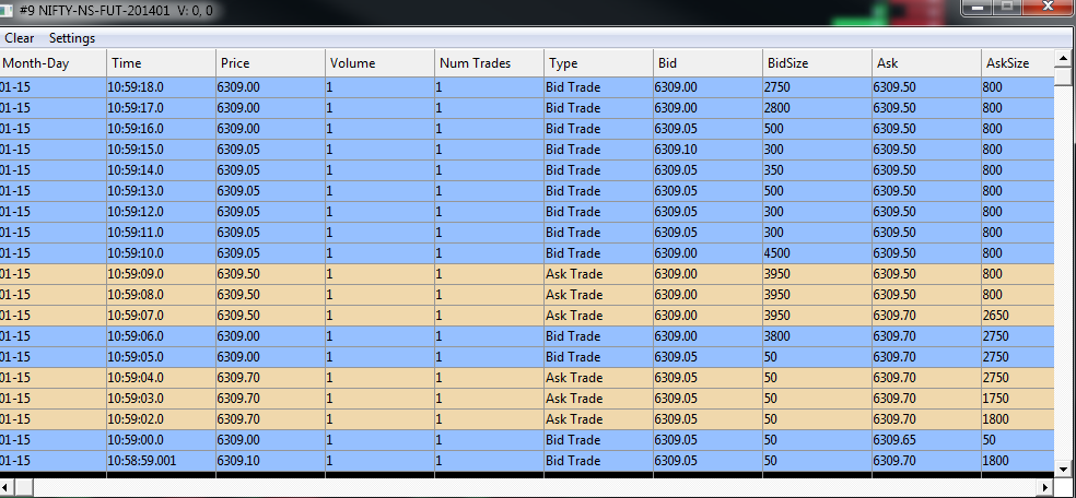 GDF FIX Session (Recv) >> 8=FIX.4.29=42135=X34=13049=GFDL32052=20140116-09:20:28.56356=DEMO320-GDF268=5279=1269=055=NIFTY167=FUT200=201401207=NS270=6327.1271=100279=1269=155=NIFTY167=FUT200=201401207=NS270=6327.5271=300279=1269=255=NIFTY167=FUT200=201401207=NS270=6327.35271=0279=1269=555=NIFTY167=FUT200=201401207=NS270=6331.1271=0279=1269=B55=NIFTY167=FUT200=201401207=NS270=0271=7120250272=20140116273=09:20:2810=075 | 2014-01-16 04:20:28 You can see in this message no volume is given. GDF FIX Session (Recv) >> 8=FIX.4.29=35535=X34=13149=GFDL32052=20140116-09:20:29.56756=DEMO320-GDF268=4279=1269=055=NIFTY167=FUT200=201401207=NS270=6327.1271=-1279=1269=155=NIFTY167=FUT200=201401207=NS270=6327.35271=-1279=1269=255=NIFTY167=FUT200=201401207=NS270=6327.35271=0279=1269=555=NIFTY167=FUT200=201401207=NS270=6331.1271=0272=20140116273=09:20:2910=067 | 2014-01-16 04:20:29 We can also see that you are repeating the symbol specification (55=NIFTY167=FUT200=201401207=NS) in every entry of the incremental refresh message. This consumes a lot of network bandwidth. We have never seen a FIX protocol implementation like this. We highly recommend that you change this and put the symbol specification only once at the beginning of the message. Sierra Chart Support - Engineering Level Your definitive source for support. Other responses are from users. Try to keep your questions brief and to the point. Be aware of support policy: https://www.sierrachart.com/index.php?l=PostingInformation.php#GeneralInformation For the most reliable, advanced, and zero cost futures order routing, *change* to the Teton service: Sierra Chart Teton Futures Order Routing Date Time Of Last Edit: 2014-01-16 09:26:11