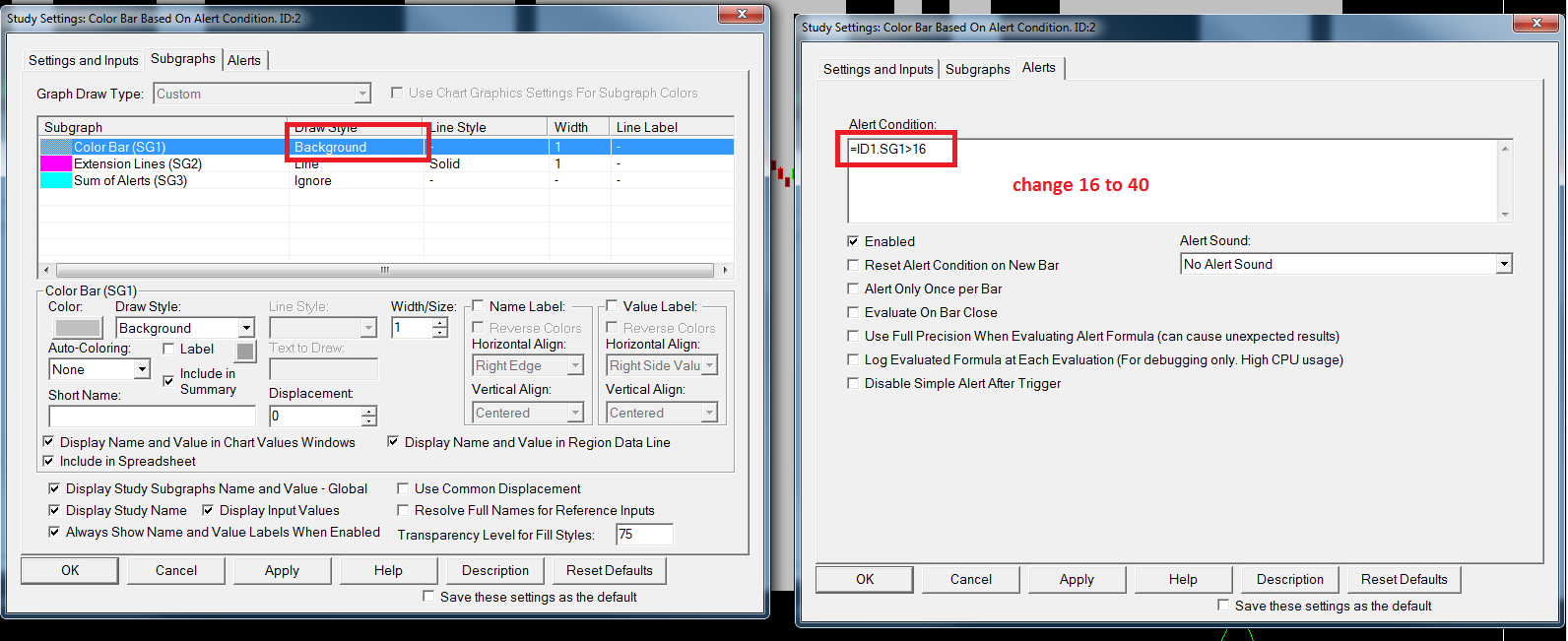 Hello, I want to know how i can paint the background from the adx when it gets above 40, ive tried the ''Color bar based on alert condition'' but i cant make it work. I hope you guys can help me. Thank you |