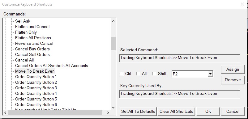 I enabled the customize keyboard shortcut "Move to Break Even" using F2 under Global Settings -> Customize Keyboard Shortcuts. The F2 works fine in a replay and in Sim trading but it does not work in a live account. Any ideas?