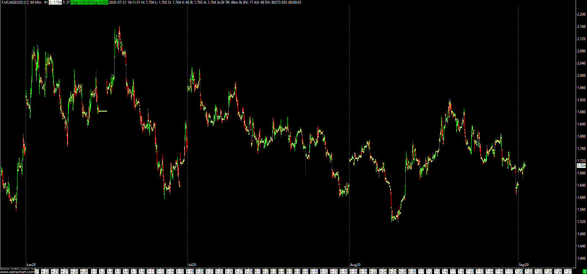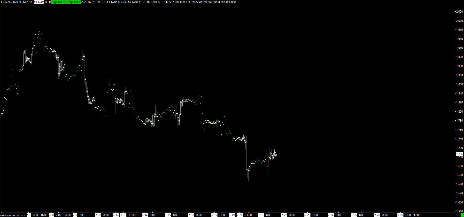 I also just wrote to CQG, and they referred me to speak with Sierra. Below is a chart they showed me which displays what they are seeing for NG. Again, thank your for all your help. CQG's data: https://imgur.com/YfF4BA9 -Ben |