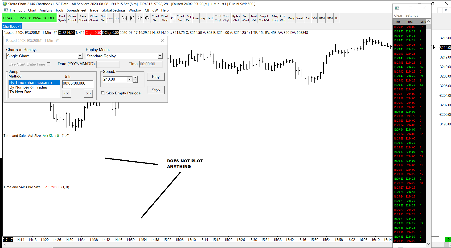 Time And Sales Bid Size / Ask Size Studies Not Working