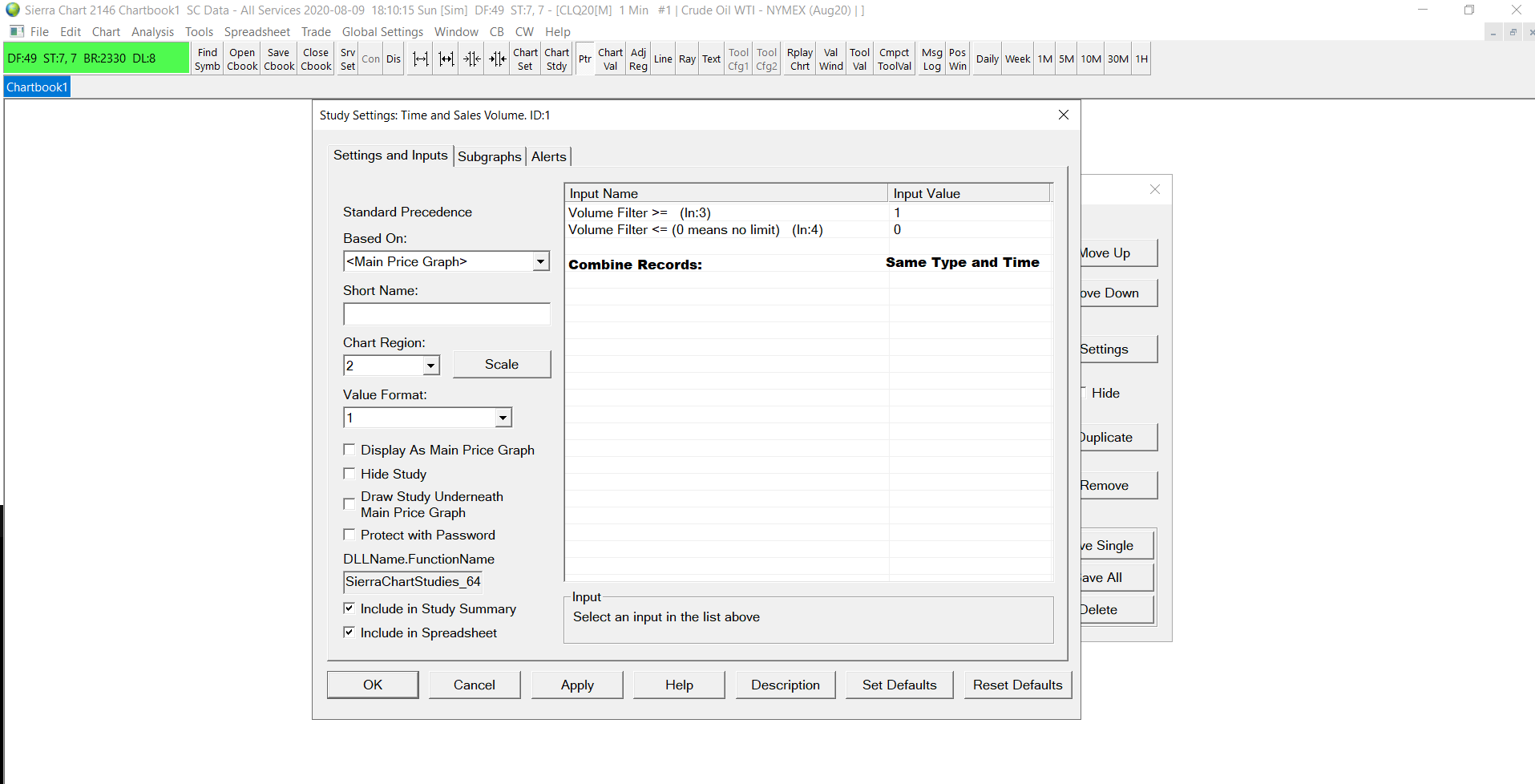 To Sierra Chart Engineering: Just wanted you guys to confirm if you are going to add the "combine records" options to time and sales volume study (since you are gonna fix the time and sales bid / ask size study). This would help a lot, this option should be there anyways. What I have done was to load a time and sales volume study, then I add the subgraph summation periodic study to sum the bid, and other the ask, and I play with the period, this way instead of the values "run away and disappear" (like in the time and sales volume study), I can sort of keep them in the bar they happen. If you add the combine records options from the time and sales window to the study, then the readings would be better. Also, the color options in global graphic settings for the time and sales regarding "trades above ask and below bid" are kind of useless, in a way they won´t tell you anything. Sierra Chart Engineering should invert that, so we can choose the color of the "trades below ask and above bid" and "trades above bid and below ask", this would show the trades that happened inside the spread, when there is one. This shows hidden buying/selling. "Above Ask" and "Below Bid" can even be removed from the options as they serve no purpose. Date Time Of Last Edit: 2020-08-12 21:24:32