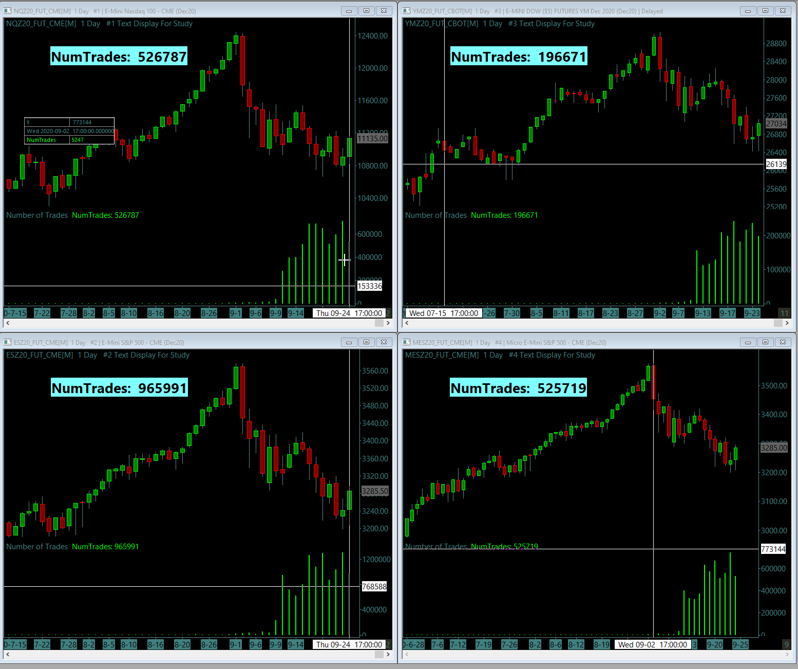 This is SO frustrating that SC doesn't even acknowledge this as a potential bug. To maintain the accuracy across instances - it's really time consuming. It happens with all the cases below: - Live feed - Delayed feed - Main instance - Sub instance(s) - First image - incorrectly accumulated data (All this under normal circumstances - with auto triggered historical downloads which happens on it's own) - Second image - After Delete/download option is used for the very last trading day - which corrects the data. Could you kindly check on this issue? Other users - Are you NOT experiencing similar issues? Date Time Of Last Edit: 2020-09-26 16:43:30