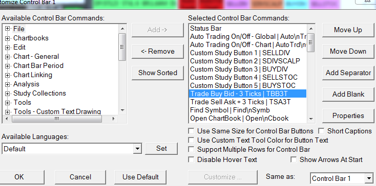 Tom may be I'm wrong but since you made a quite complex code in so less time, sometimes ago I asked if it was possible to make a modification to the code of a control bar buttons in sierrachart precisely TBB3T and TSA3T see attached snapshot. The modification it's just the possibility to set up the number of ticks that now are fixed at -3 for Bid and +3 for Ask, since i.e on MicroNQ 3 ticks is very thin while on inerest rate FGBL is huge so need to set up like 12ticks on micro NQ and 2 ticks on FGBL and so on for any other derivatives traded. Thx |