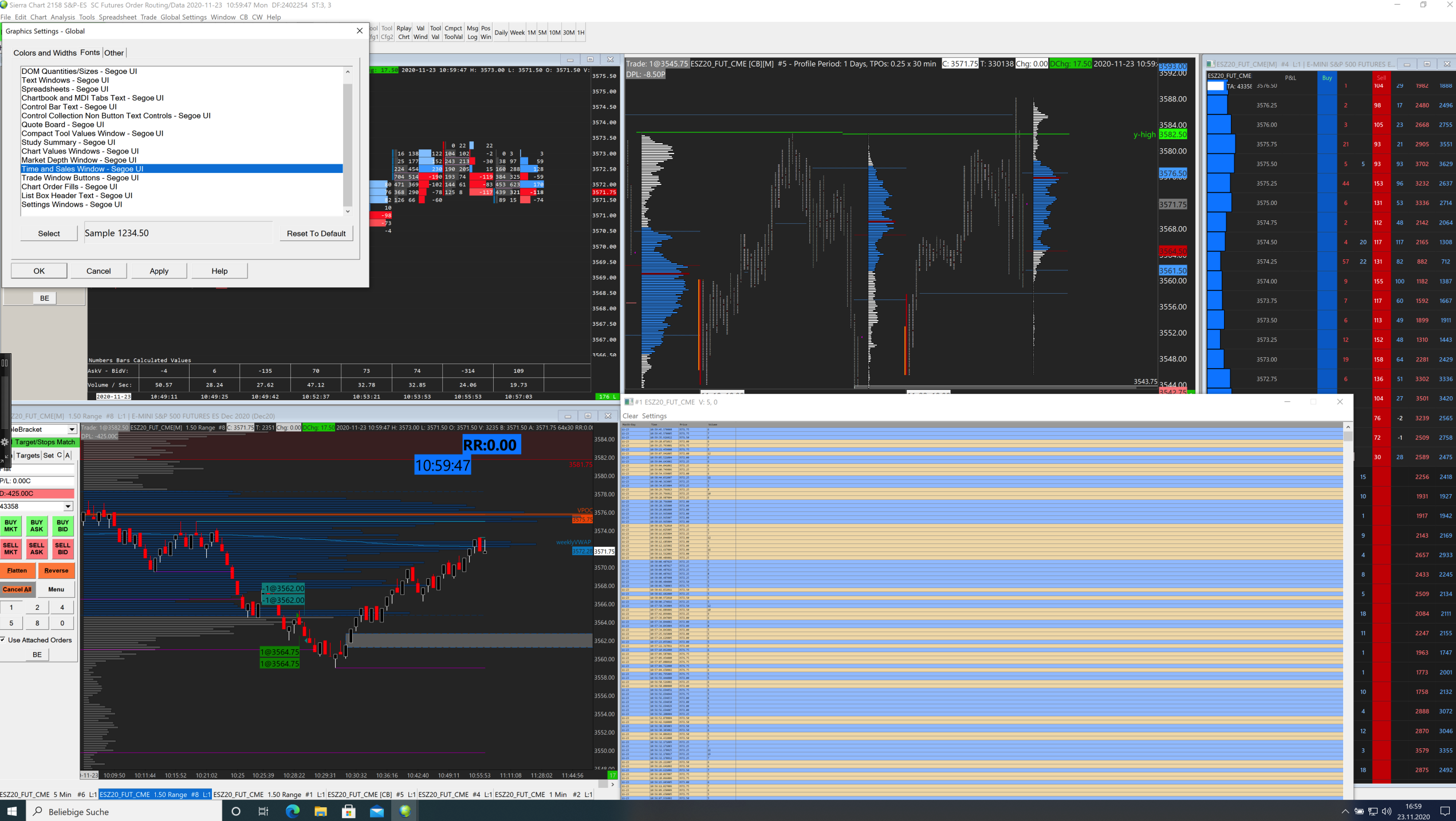 Sierra Chart Engineering this is exactly what I did, see Screenshots, but it did not help. I updated all Fonts but neither changed the Times and Sales list- see attached Screenshots. Would appreciate an answer that is not standard but that solves my problem. Thank you |