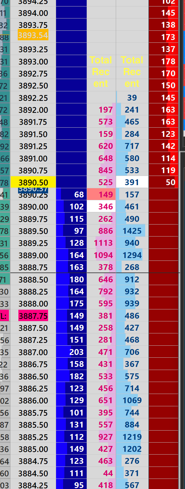 Recent BID ASK Totals