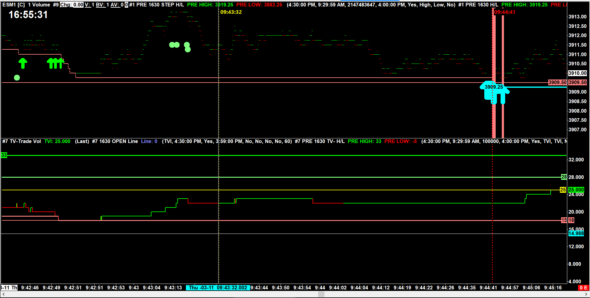 Thanks for your reply. That is a bit beyond my understanding. But if I read it correctly, that is just the change in color. I need to identify "when this happens AND the slope is Green (up), then alert. It doesnt always happen WHEN the color changes. Which is why I am wondering why it changes on a level line. The output is the same before when red, as it is when green (and vice versa). changing the value point doesnt identify any small difference either. I got a partial fix by putting ID70.SG1 < ID70.SG1[-20] to show typically in the Trade Volume study that once going one way, it continues. But ultimately ive noticed that the Trade Volume when 4 points above the trade Volume LOD, and the price at the LOD, its significant. Probably bc it denotes the movement of more trades bat the ask while at the price LOD is a mover.