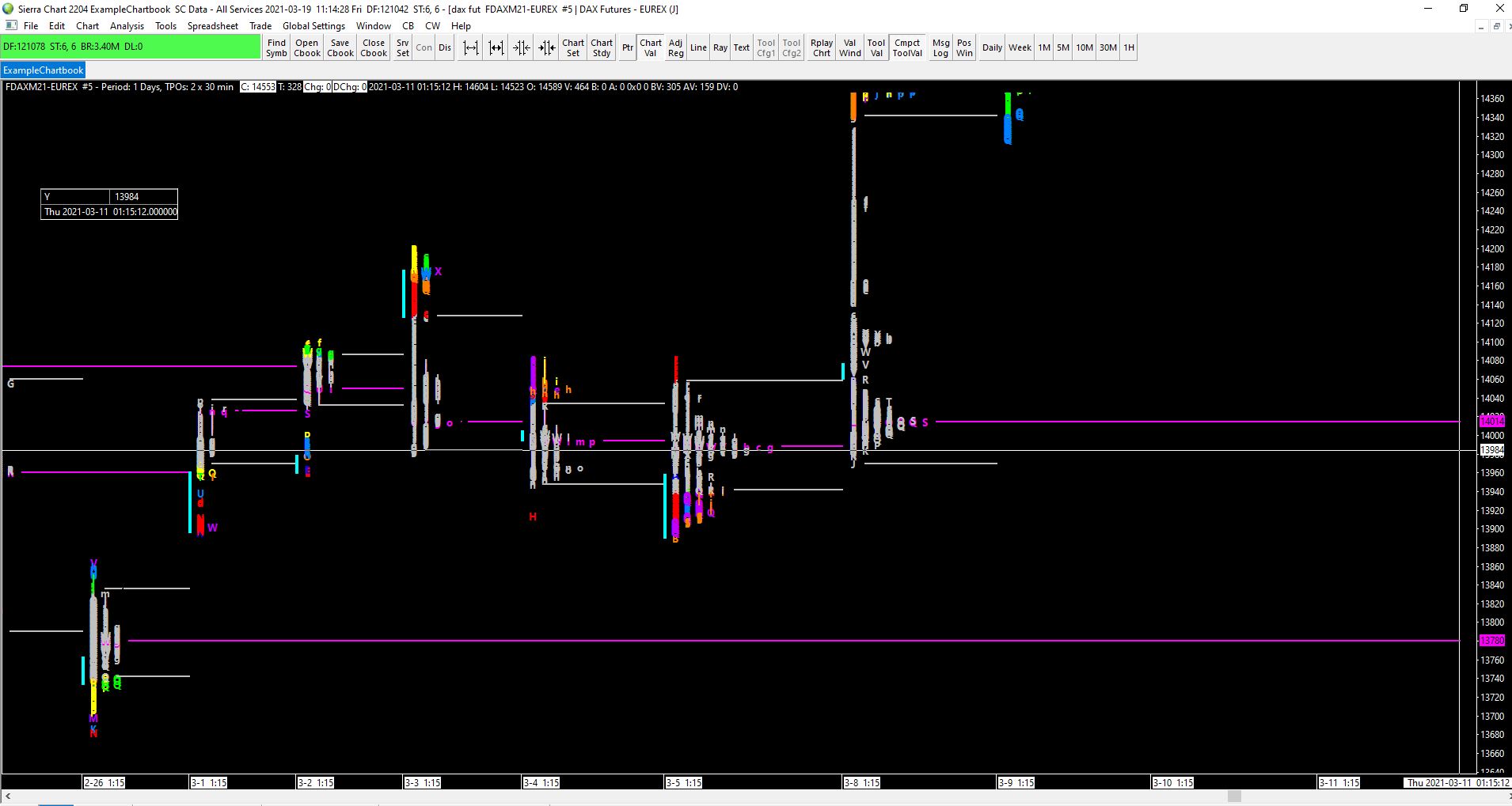 From Google Translate: I went to the June contract on the DAX30 futures (FDAXM21-EUREX) and I notice that I have quotation holes in my TPO, so I cannot locate my single print areas. How can I remedy this?