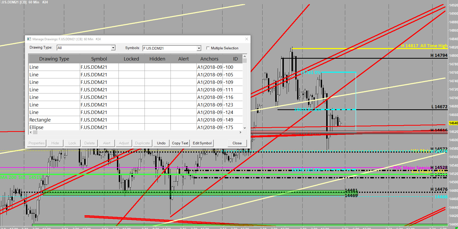 Hello After rollover into a new contract, the subscriptions were taken over as well. Due to the interest rate difference there is a deviation in the drawings. With the tool Manage Drawings you can make an adjustment. I have tried all but the drawing have not changed. What is the exact step to adjust the drawings to the new contract? Thanks http://www.sierrachart.com/image.php?Image=1616336589447.png |