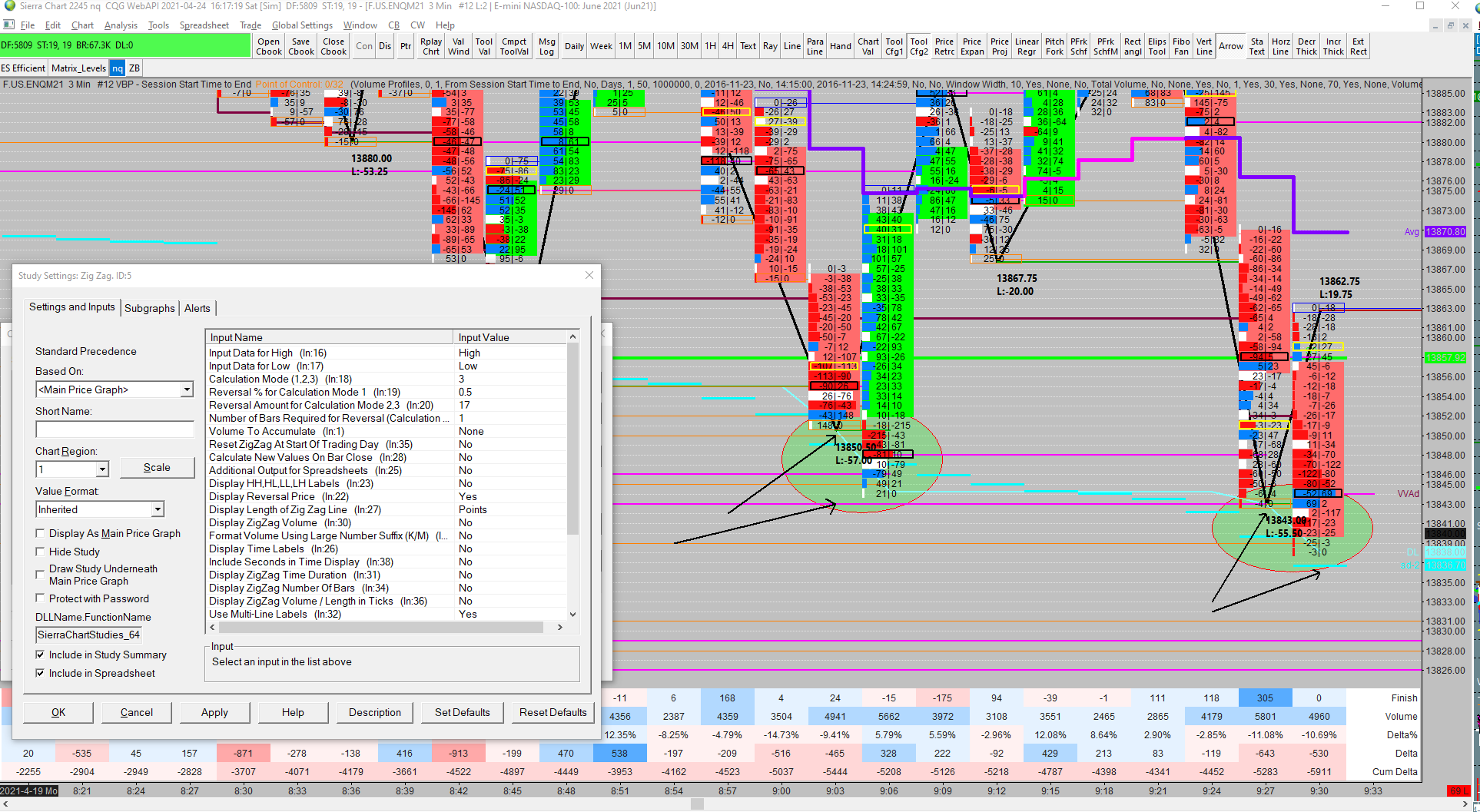 Duplicate that chart with Chart >> Duplicate Chart, and remove all studies other than the zigzag study and then post an image of the chart at that particular date-time range.