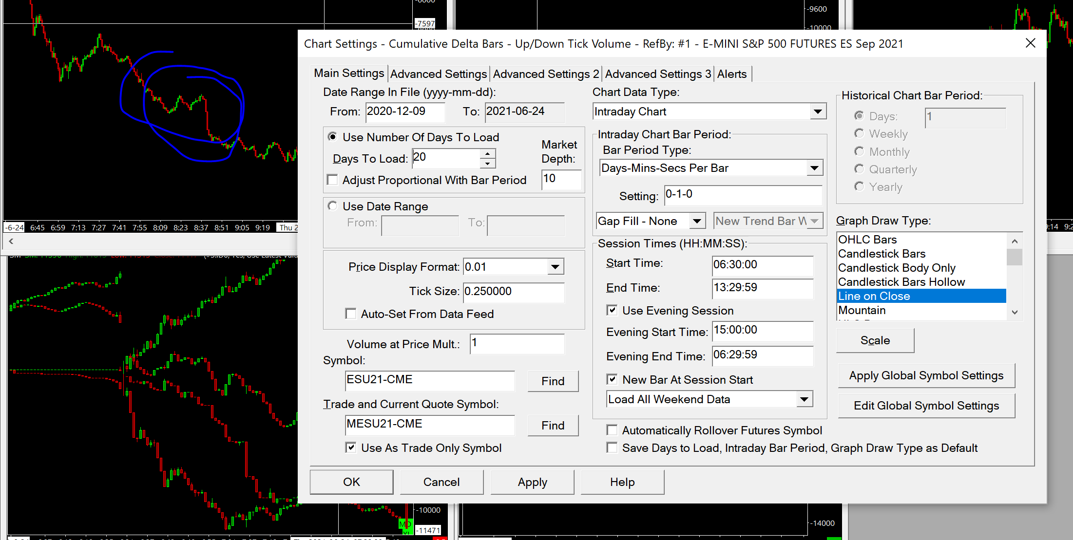 Hello, I need some help with the study/price overlay study. I'm trying to achieve a singe chart with 4 different lines of cumulative delta with varying volume inputs - the image below of the clean single chart is what I'm aiming for, and the image of the 4 bad looking charts is my work in progress. Ok, as for the specific questions: how do I get the labels on the y-axis? how do I make each chart start at the 0 value like in the image below as well? and how do I make the chart into lines instead of candlesticks like the chart image below? thanks for your time, it's really appreciated. |