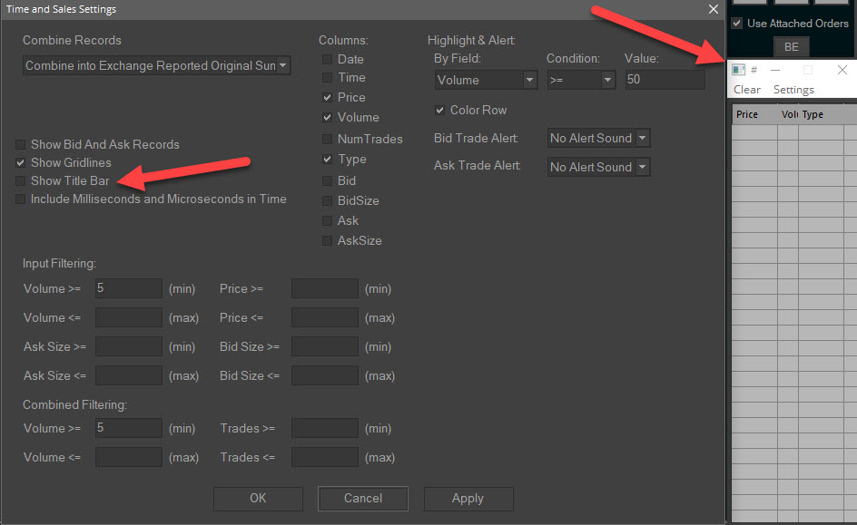 We just tried the different permutations of not automatically opening a chartbook with the Time and Sales window open and the Title Bar not displayed. Each time, we get the Time and Sales window open and the Title Bar is properly removed. So again, we are still unable to reproduce this. Please attach the Chartbook for which you have this problem and we will see if we can reproduce it with your chartbook. Refer to these instructions: Support Board Posting Information: Attaching a File (Optional) For the most reliable, advanced, and zero cost futures order routing, use the Teton service: Sierra Chart Teton Futures Order Routing |