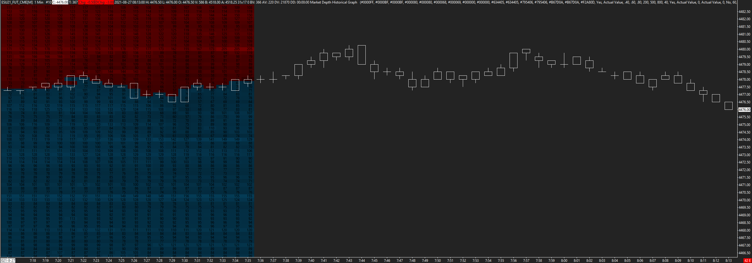 I have confirmed that Support Downloading Historical Market Depth Data is set to Yes and Max Historical Market Depth Days to Download set to 7 days. Here is the relevant log info. Thanks! Added historical Market depth data request for ESU21_FUT_CME to the queue. | 2021-08-31 16:48:18.609 Market depth data recording state for symbol ESU21_FUT_CME is set to download 'Pending'. | 2021-08-31 16:48:18.609 Triggering next historical data download in queue. | 2021-08-31 16:48:18.610 HD Request # 35 | Downloading Market depth data for ESU21_FUT_CME. Service: cme.marketdepth | 2021-08-31 16:48:18.610 HD Request # 35 | Download start date-time: 2021-08-27 07:35:00.000000. | 2021-08-31 16:48:18.611 HD Request # 35 | Using server: ds23.sierracharts.com port 10150 | 2021-08-31 16:48:18.611 Socket (3) | Creating socket. | 2021-08-31 16:48:18.611 Socket (3) | New receive buffer size: 5242880 | 2021-08-31 16:48:18.611 Socket (3) | Connecting to IP: 216.1.90.130. | 2021-08-31 16:48:18.611 HD Request # 35 | Setting DTC encoding to Binary VLS | 2021-08-31 16:48:18.951 HD Request # 35 | Sending historical data logon request message. | 2021-08-31 16:48:18.951 HD Request # 35 | Requesting market depth data. Start date-time: 2021-08-27 07:35:00. Symbol: ESU21 | 2021-08-31 16:48:19.608 HD Request # 35 | Decompressing data. | 2021-08-31 16:48:19.741 HD Request # 35 | Receiving market depth data for ESU21_FUT_CME starting at 2021-08-27 07:35:00.068000 | 2021-08-31 16:48:20.732 HD Request # 35 | Truncating file to starting date-time of 2021-08-27 07:35:00.068000 | 2021-08-31 16:48:20.741 HD Request # 35 | Timestamp of first market depth data file record written: 2021-08-27 07:35:00.068000 | 2021-08-31 16:48:25.277 Socket (3) | CloseSocket call. | 2021-08-31 16:57:49.716 Socket (3) | Shutdown started. Waiting for graceful close. | 2021-08-31 16:57:49.716 Historical data download thread signaled to stop. | 2021-08-31 16:57:49.723 HD Request # 35 | Received 16272163 Market depth data records from 2021-08-27 07:35:00.068000 to 2021-08-31 16:57:46.636000 (4.4 days) and wrote 16272163 records for ESU21_FUT_CME | 2021-08-31 16:57:49.723 HD Request # 35 | Completion time: 9m 31s | 2021-08-31 16:57:49.723 HD Request # 35 | Market depth data download complete for ESU21_FUT_CME. Unique request ID: 36 | 2021-08-31 16:57:49.723 Removing historical data download ID 36. | 2021-08-31 16:57:49.723 Real-time market depth file updates started for ESU21_FUT_CME | 2021-08-31 16:57:49.723 Opened cached Depth file: C:\SierraChart\Data\MarketDepthData\ESU21_FUT_CME.2021-08-31.depth | 2021-08-31 16:57:49.724 ESU21_FUT_CME/ESU21_FUT_CME [CB][M] 30 Sec #2 | Flagging to reload Intraday data on market depth download completion. | 2021-08-31 16:57:49.724 ESU21_FUT_CME/ESU21_FUT_CME [CB][M] 1 Min #7 | Flagging to reload Intraday data on market depth download completion. | 2021-08-31 16:57:49.724 ESU21_FUT_CME[M] 5 Min #21 | Flagging to reload Intraday data on market depth download completion. | 2021-08-31 16:57:49.724 ESU21_FUT_CME/ESU21_FUT_CME [CB][M] 1024 Trades #17 | Flagging to reload Intraday data on market depth download completion. | 2021-08-31 16:57:49.724 ESU21_FUT_CME/ESU21_FUT_CME [CB][M] 5 Min #5 | Flagging to reload Intraday data on market depth download completion. | 2021-08-31 16:57:49.724 ESU21_FUT_CME[M] 2500 Trades #18 | Flagging to reload Intraday data on market depth download completion. | 2021-08-31 16:57:49.724 ESU21_FUT_CME[M] 2500 Trades #20 | Flagging to reload Intraday data on market depth download completion. | 2021-08-31 16:57:49.724 ESU21_FUT_CME [CBV][M] 5 Min #16 | Flagging to reload Intraday data on market depth download completion. | 2021-08-31 16:57:49.724 ESU21_FUT_CME [CBV][M] 30 Min #6 | Flagging to reload Intraday data on market depth download completion. | 2021-08-31 16:57:49.724 ESU21_FUT_CME [C][M] 1 Day #13 | Flagging to reload Intraday data on market depth download completion. | 2021-08-31 16:57:49.724 ESU21_FUT_CME [C][M] 10000 Volume #12 | Flagging to reload Intraday data on market depth download completion. | 2021-08-31 16:57:49.724 ESU21_FUT_CME [C][M] 40 Trades #14 | Flagging to reload Intraday data on market depth download completion. | 2021-08-31 16:57:49.724 ESU21_FUT_CME [CV][M] #4 | Flagging to reload Intraday data on market depth download completion. | 2021-08-31 16:57:49.724 ESU21_FUT_CME/MESU21_FUT_CME [CBV][M] 1024 Trades #3 | Flagging to reload Intraday data on market depth download completion. | 2021-08-31 16:57:49.724 ESU21_FUT_CME [CBV][M] 512 Trades #9 | Flagging to reload Intraday data on market depth download completion. | 2021-08-31 16:57:49.724 ESU21_FUT_CME[M] 1 Min #10 | Flagging to reload Intraday data on market depth download completion. | 2021-08-31 16:57:49.724 ESU21_FUT_CME [CBV][M] 750 Volume #15 | Flagging to reload Intraday data on market depth download completion. | 2021-08-31 16:57:49.724 ESU21_FUT_CME [CBV][M] 10000 Volume #22 | Flagging to reload Intraday data on market depth download completion. | 2021-08-31 16:57:49.724 ESU21_FUT_CME [C][M] 40 Trades #14 | Flagging to reload Intraday data on market depth download completion. | 2021-08-31 16:57:49.724 Triggering next historical data download in queue. | 2021-08-31 16:57:49.724 No download requests in the queue to start downloads for. | 2021-08-31 16:57:49.724 ESU21_FUT_CME [C][M] 10000 Volume #12 | Reloading chart. | 2021-08-31 16:57:49.725 ESU21_FUT_CME [CV][M] #4 | Reloading chart. | 2021-08-31 16:57:49.737 ESU21_FUT_CME [CBV][M] 750 Volume #15 | Reloading chart. | 2021-08-31 16:57:49.806 ESU21_FUT_CME/ESU21_FUT_CME [CB][M] 1024 Trades #17 | Reloading chart. | 2021-08-31 16:57:49.842 Socket (3) | Socket gracefully closed by remote side. | 2021-08-31 16:57:49.879 Socket (3) | Closed. | 2021-08-31 16:57:49.879 ESU21_FUT_CME [C][M] 40 Trades #14 | Reloading chart. | 2021-08-31 16:57:49.904 ESU21_FUT_CME[M] 2500 Trades #18 | Reloading chart. | 2021-08-31 16:57:49.918 ESU21_FUT_CME/ESU21_FUT_CME [CB][M] 1 Min #7 | Re