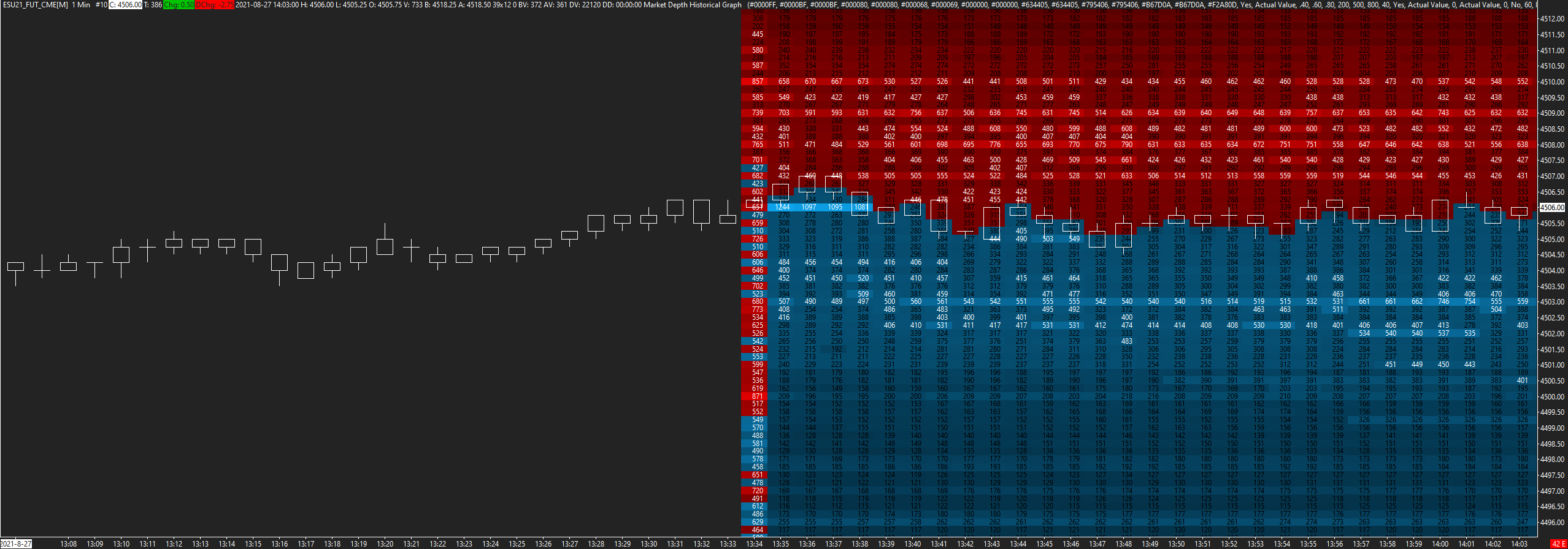 First off, sorry for wasting your time if you have began looking into this. I backed up and deleted the market depth data in the appropriate folder. I then opened a new intraday chart and set it up as directed with adding the study for market depth data. It proceeded to download the required market depth data from the new chartbook. When I now open the old chartbook, in the pic, it reads all the downloaded depth data. I am not sure why it is this way, I very likely have something setup a bit wrong on the chart from Ticino. But I have figured out how to get it to work for me for now. I will try to figure out what I messed up on the Ticino chart. Thanks.