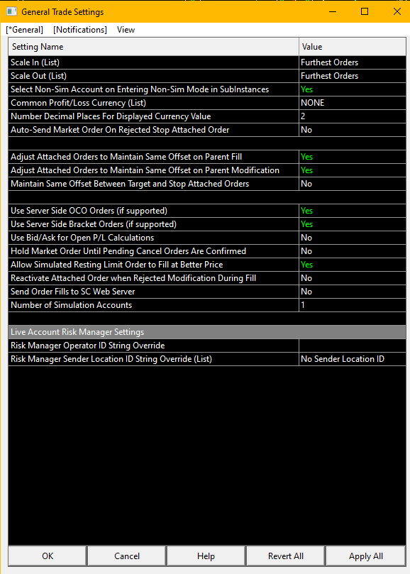Thanks very much indeed for the fast reply: 1. Yes, I can confirm that the first server is indeed set to SERVER 3 2. I've just noticed that the 3 orders were set to "Good till Canceled" and have changed them to "Day" 3. In "General Trade Settings" "Use Server Side Bracket Orders (if supported)" was set to "No", now set to "Yes". Could these last 2 points be the issue? Best wishes and thanks again. |
