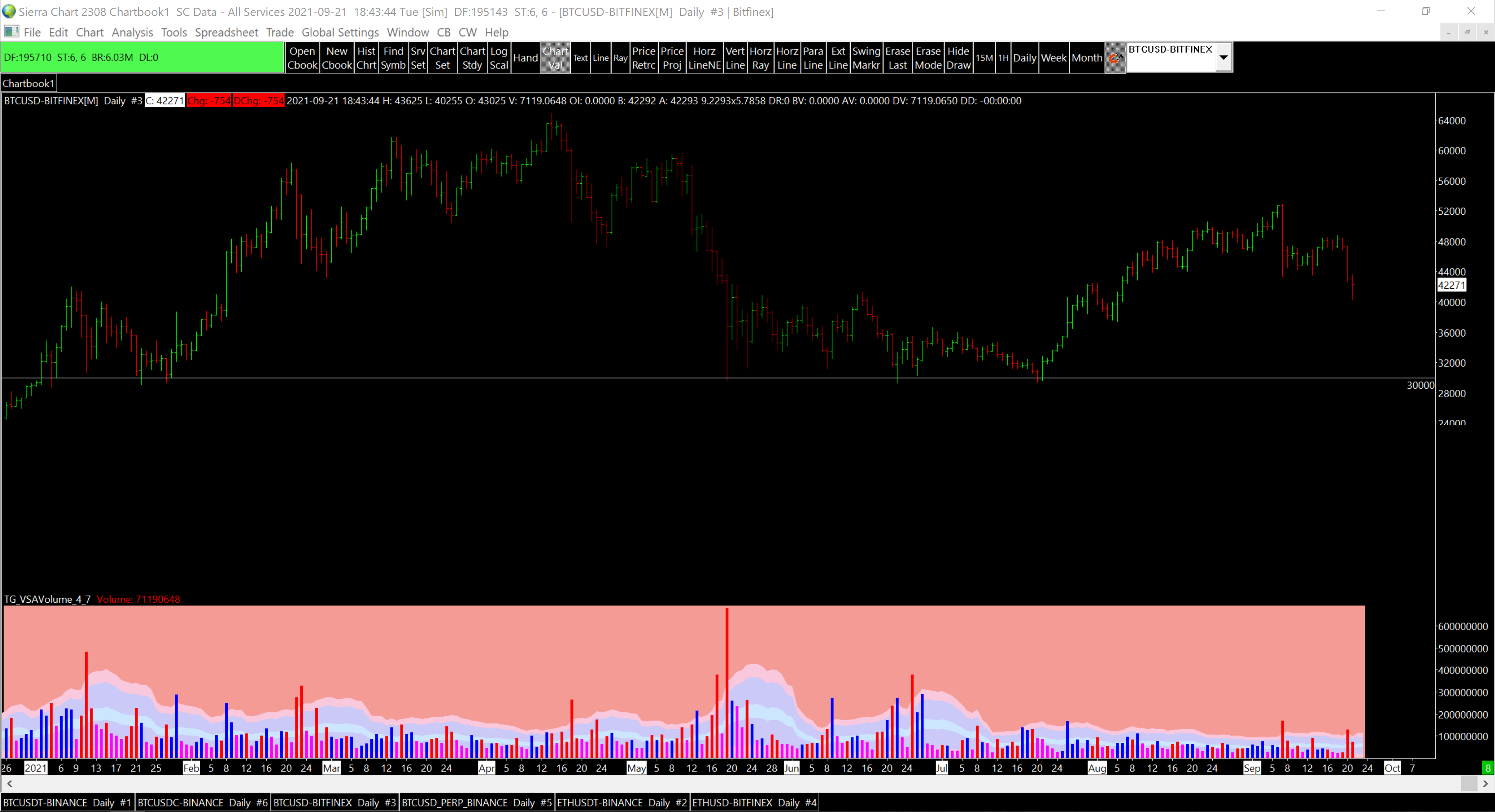 You may be comparing the wrong symbols. Binance has a lot of different symbols which are similar. This is the one you are probably looking for: http://www.sierrachart.com/image.php?Image=1632259693803.png The data simply could not be inaccurate. This is a claim that has no basis in fact or reality, or is even possible. Simply impossible. How can that possibly be true? Sierra Chart Support - Engineering Level Your definitive source for support. Other responses are from users. Try to keep your questions brief and to the point. Be aware of support policy: https://www.sierrachart.com/index.php?l=PostingInformation.php#GeneralInformation For the most reliable, advanced, and zero cost futures order routing, *change* to the Teton service: Sierra Chart Teton Futures Order Routing |