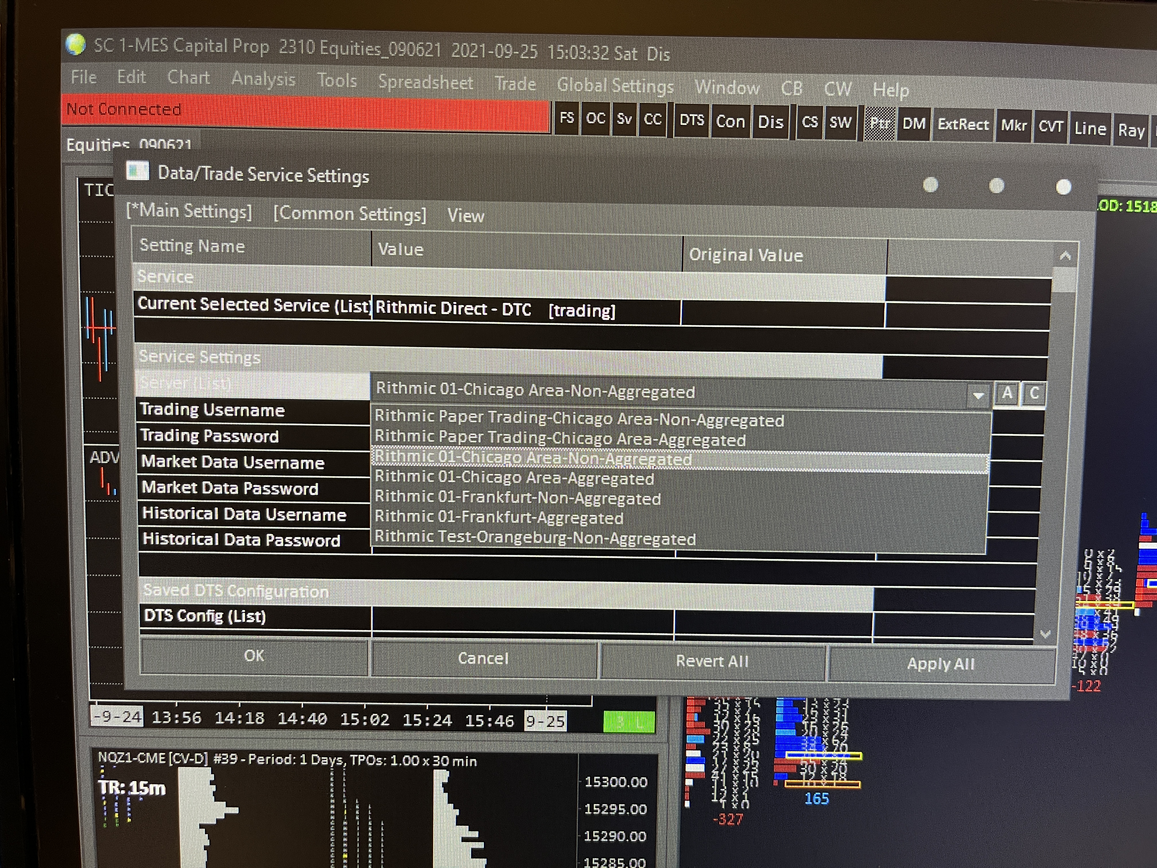 Data/Trade Service Settings for Rithmic (SC ver 2310)