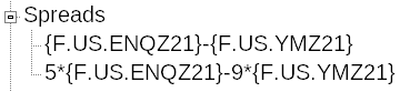 This doesn't: 5*{F.US.ENQZ21}-9*{F.US.YMZ21}