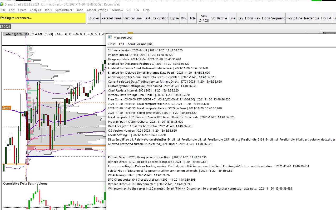 Sierra Chart Support - Engineering Level Your definitive source for support. Other responses are from users. Try to keep your questions brief and to the point. Be aware of support policy: https://www.sierrachart.com/index.php?l=PostingInformation.php#GeneralInformation For the most reliable, advanced, and zero cost futures order routing, *change* to the Teton service: Sierra Chart Teton Futures Order Routing Date Time Of Last Edit: 2021-11-22 03:58:08