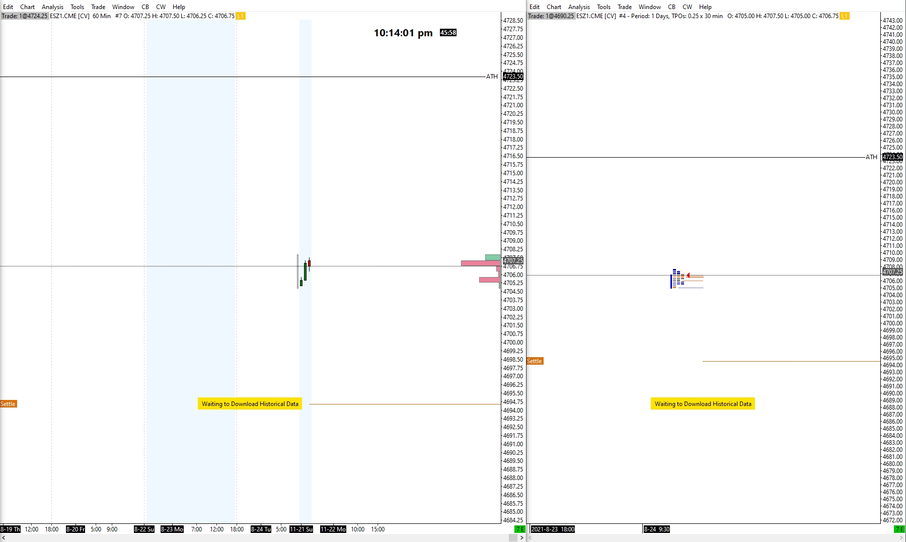 Hi Sierra Support I followed all the steps. I just uploaded and paid to get package 11 with denali and paid the CME market data non pro. And I relaunched everything and have tried over and over to redownload data and now my screen is stuck like the attached image. It just loaded about 3 hours of data and nothing is coming up. Date Time Of Last Edit: 2021-11-22 03:14:19