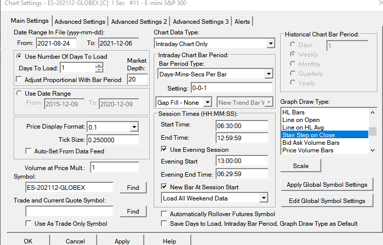 i have market depth chart that i have been setting up all night. (thats also frustrating, wish we could just a sample chart book to start with). why isn't last stair step on close working ? it was working during early AM (from 10 PM PST until 3 AM PST while i was setting it up, it was working find) woke up this morning to see it work when i load the chart but only for a few seconds and then it stops. why? super frustrating |