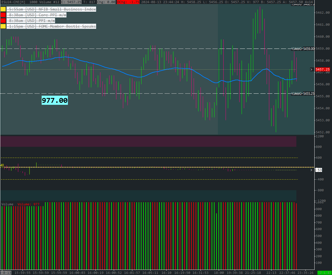 Dear, I'm trading ES futures based on volume bars. I use chart setting 5000 for volume. is there a way to display on the chart the number of volume left per bar (so before a new bar begins). So, a certain counter counting down from 5000 or up to 5000 to a new bar? thanks best regards Jeroen |