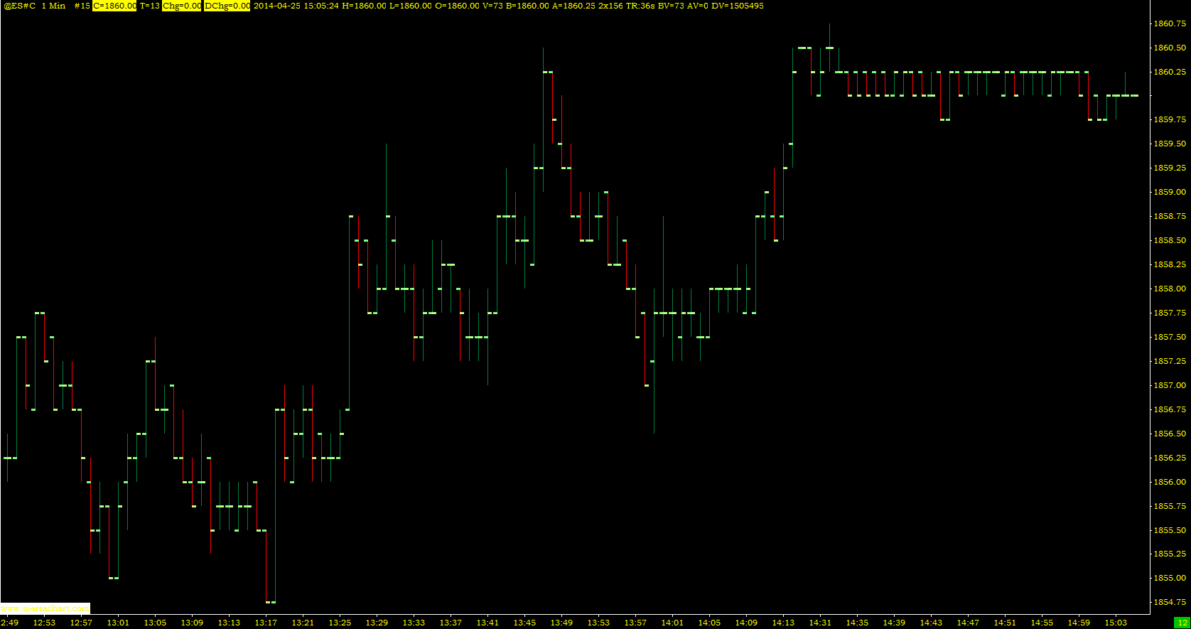 When you respond, do not start a new Support Request but instead post within the very same thread in the Message box at the bottom of the page. We think the problem might have something to do with the color settings. Here is the documentation for that: http://www.sierrachart.com/index.php?l=doc/doc_GraphicsSettings.html Sierra Chart Support - Engineering Level Your definitive source for support. Other responses are from users. Try to keep your questions brief and to the point. Be aware of support policy: https://www.sierrachart.com/index.php?l=PostingInformation.php#GeneralInformation For the most reliable, advanced, and zero cost futures order routing, *change* to the Teton service: Sierra Chart Teton Futures Order Routing Date Time Of Last Edit: 2014-05-01 21:16:11