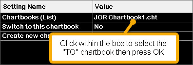 Trying to duplicate chart to another chartbook, but pop up does not list any other chartbook to send to other than the book I'm already in that I'm trying to send the chart from. I even have the chartbook up and running that I want to duplicate to, at the same time as the chartbook I'm duplicating from, to no avail. Pop up does not offer the other open chartbook to duplicate to, much less the other chartbooks listed under file. Only the chartbook that I'm currently in is on the list to choose from to where I want to duplicate to. |