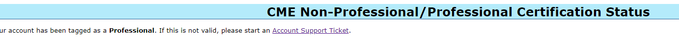 Hi Devon, regarding Real-time CME Group Futures Data we must ask: do you have a Futures Trading Account? The CME Group expects you to have a Futures Trading Account in order to qualify as a Non-Professional [*Note: we know of only the CME Group having this rule, not EUREX, not CFE, not NASDAQ, not NYSE, just the CME Group*] From the CME Group Certification: "The Non-Professional Subscriber must: a. have an active and funded futures trading account; b. be an individual, natural person or small business entity" The solution if you do not have a Futures Trading Account (but would otherwise qualify as a Non-Professional) is described here: Easy Solution to CME Funded Trading Account Requirement |