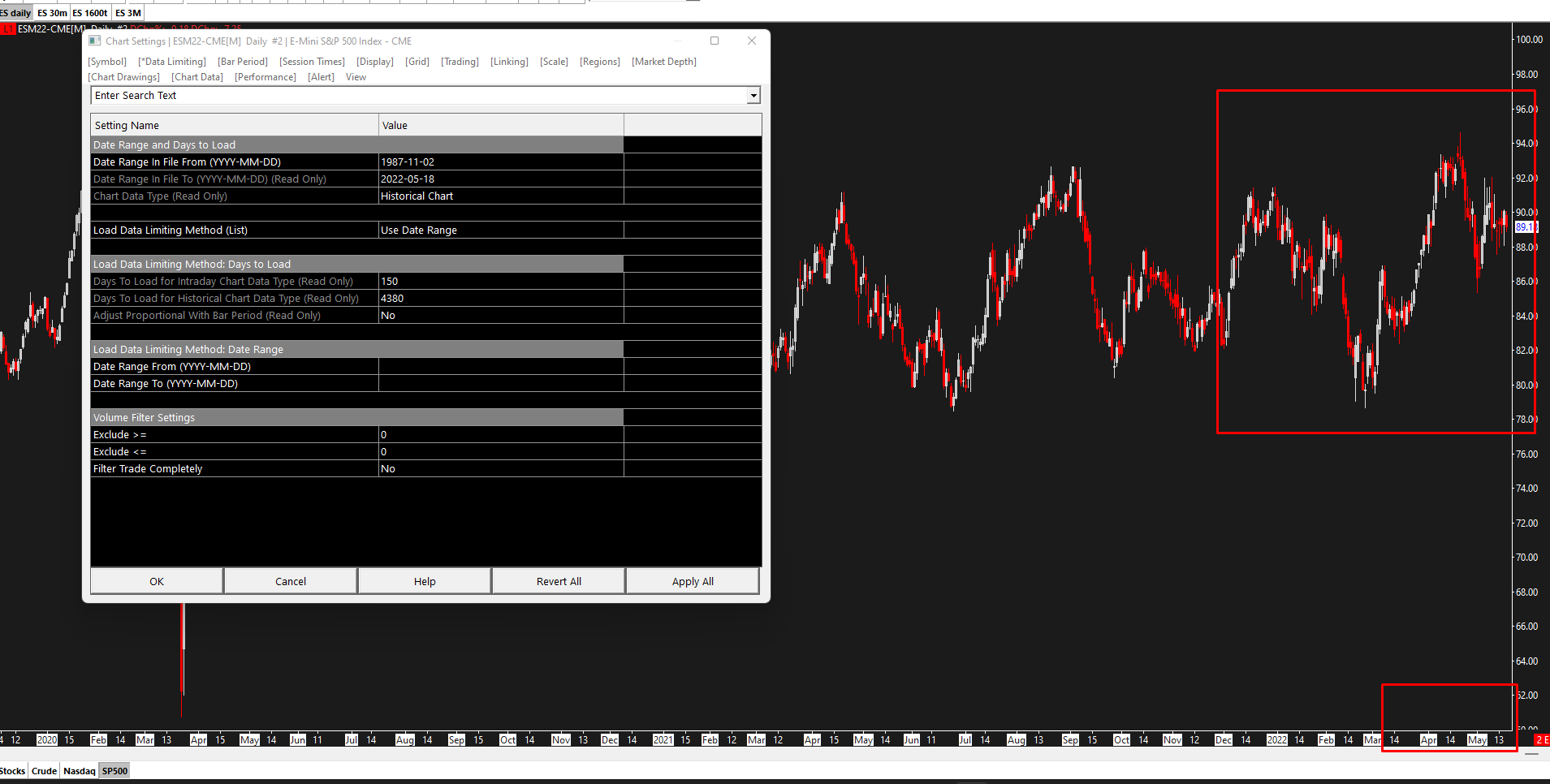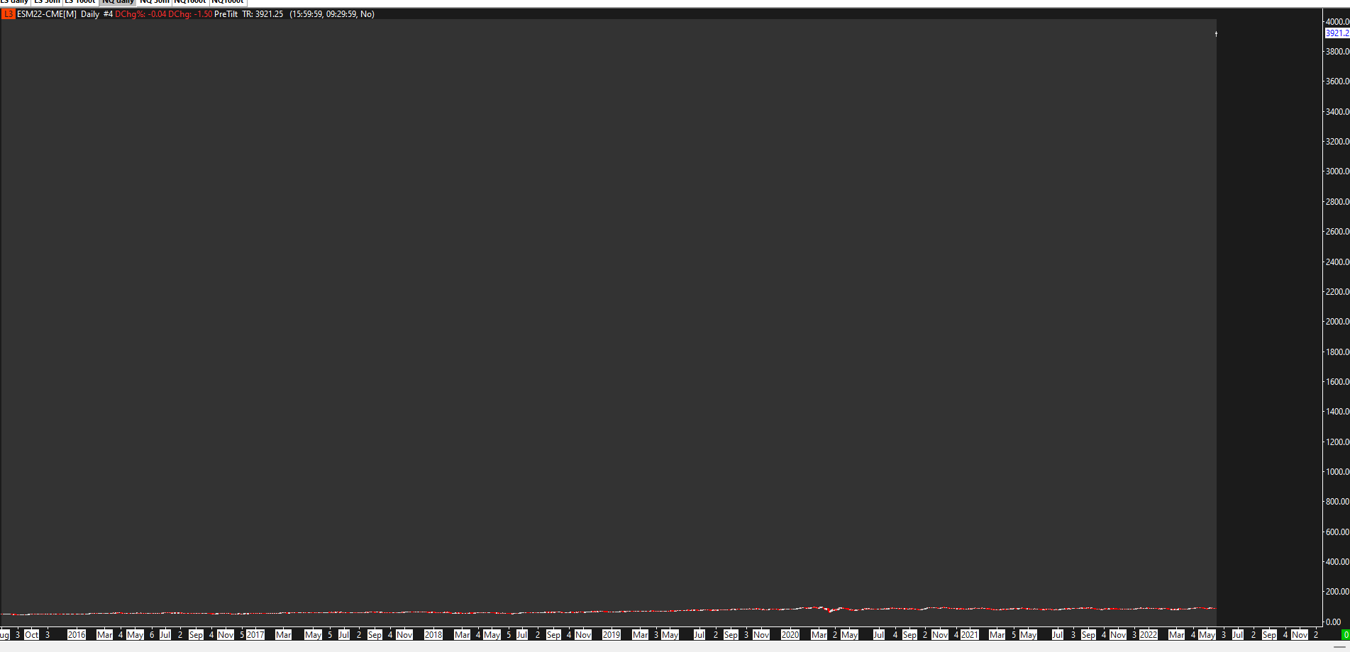 With that chart active, select Edit >> Delete All Data and Download. Let us know if the data changes. If you still have the problem, then we would like for you to attach the file named ESM22-CME.dly to this thread for us to take a look at it. The file is located in the Data folder which is directly under your main Sierra Chart installation folder. For the most reliable, advanced, and zero cost futures order routing, use the Teton service: Sierra Chart Teton Futures Order Routing |