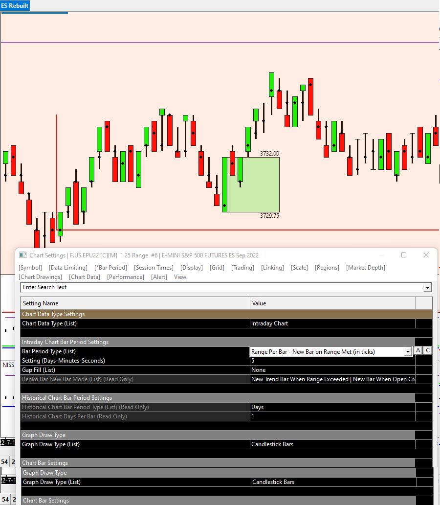 Hi I want to use 5 range chart but what the tick size I put and trusts the bar period for the 5 range chart