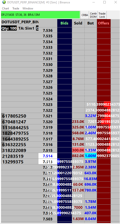 Hi, I wanted to report the bugs explained below. The tickers I tried are for Binance. 1) For the inverse perpetual futures (BTC-margined, position size measured in contracts) it multiplies every contract by 10K. 2) For the regular perpetual futures (USD-T margined, position size measured in crypto) it multiplies every crypto quantity bought/sold by 10K. The numbers appear this way both on the Sold/Bot columns of the DOM and on the Time & Sales, giving your wrong impression of what is being bought and sold. 3) The previous bugs inevitably affect the volume, since wrong quantities are being counted. However, there is a way to display the correct volume, by changing the Volume Value Format from 1 to 0,0001 at Chart Settings. But this comes at a cost for the inverse perpetual futures where volume should be a positive integer (multiple of contracts) but you end up with 4 annoying decimal places instead. For all of the above problems I attached screenshots. -At the BTC screenshot, you can see the problem with the decimal places after the Chart Settings tweak. The Sold/Bot columns are still displaying wrong numbers (for example at the first row it should be 7 contracts sold and 745 contracts bought instead of 70K and 7.45M). -At the DOT screenshot, the same problem of multiplying by 10K also exists, but this time I did not tweak Chart settings to fix the volume. I just sent it to show you an extra bug at the Bids/Offers columns (white gigantic numbers). Not viewing the right data is a major problem and I cannot upgrade from trial to paid if this is not fixed. But frankly, it seems like this problem can be fixed by simply changing a variable value, so hopefully it can be done easily and quickly and then I'll upgrade. Thanks! |