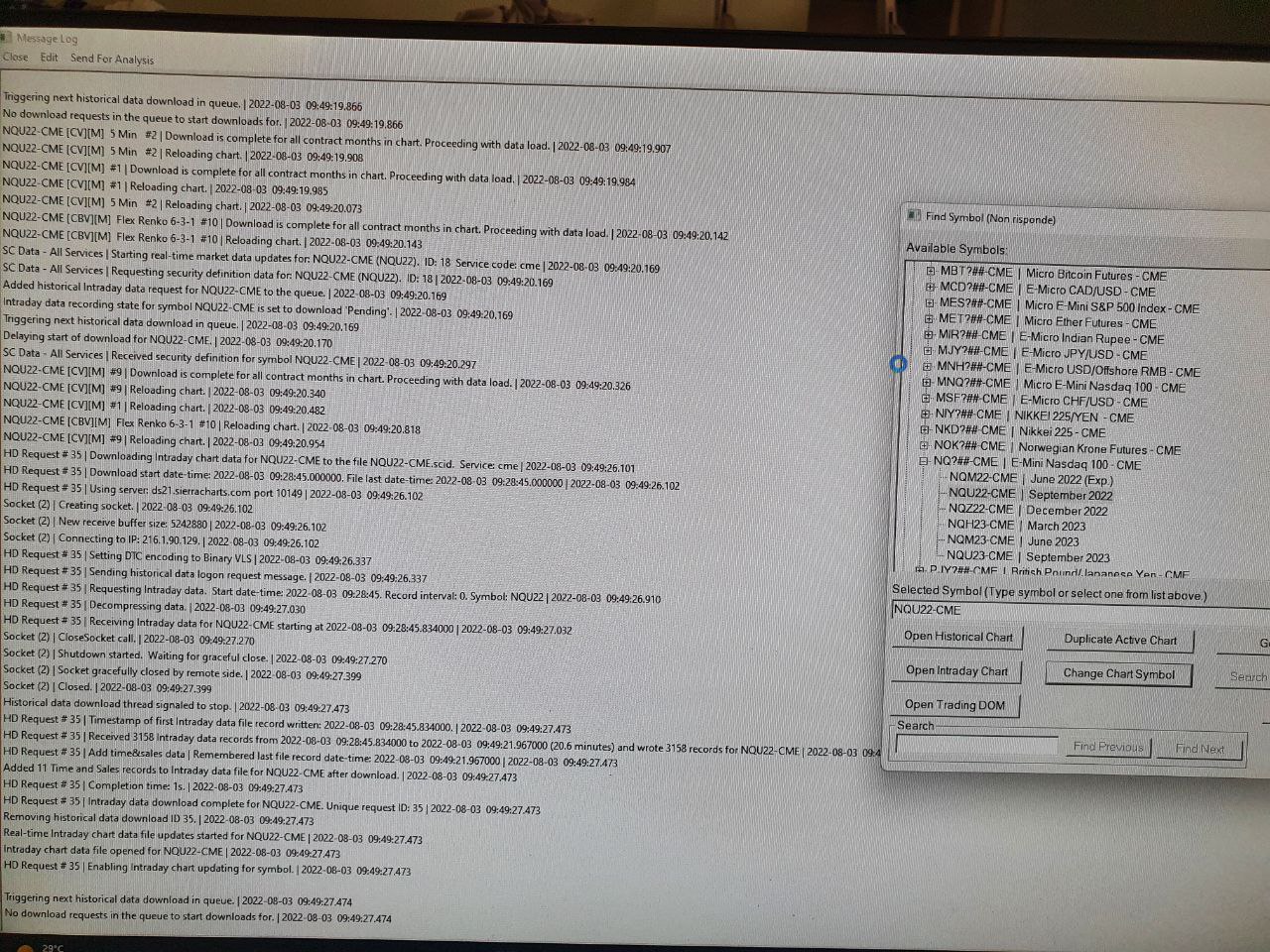 Hi i'm using a chartbook in Sierra with different instruments without problems i'm using denali feed cme bundle,but he crash and stucked on hystorical download when try to swith to NQU22,also for 30 minutes any help pls