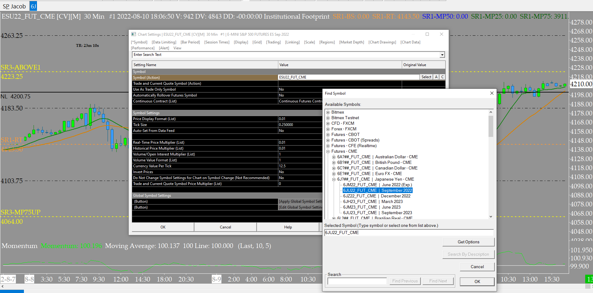 You should not be having issues with either the J7 or 6J symbols. The following link is our charts for each of these symbols. The J7 is lightly traded, but there is still data. The 6J has much more data. https://www.sierrachart.com/image.php?Image=1660320265795.png Let us know if you are still having issues with the data and we will have to dig deeper. For the most reliable, advanced, and zero cost futures order routing, use the Teton service: Sierra Chart Teton Futures Order Routing |
