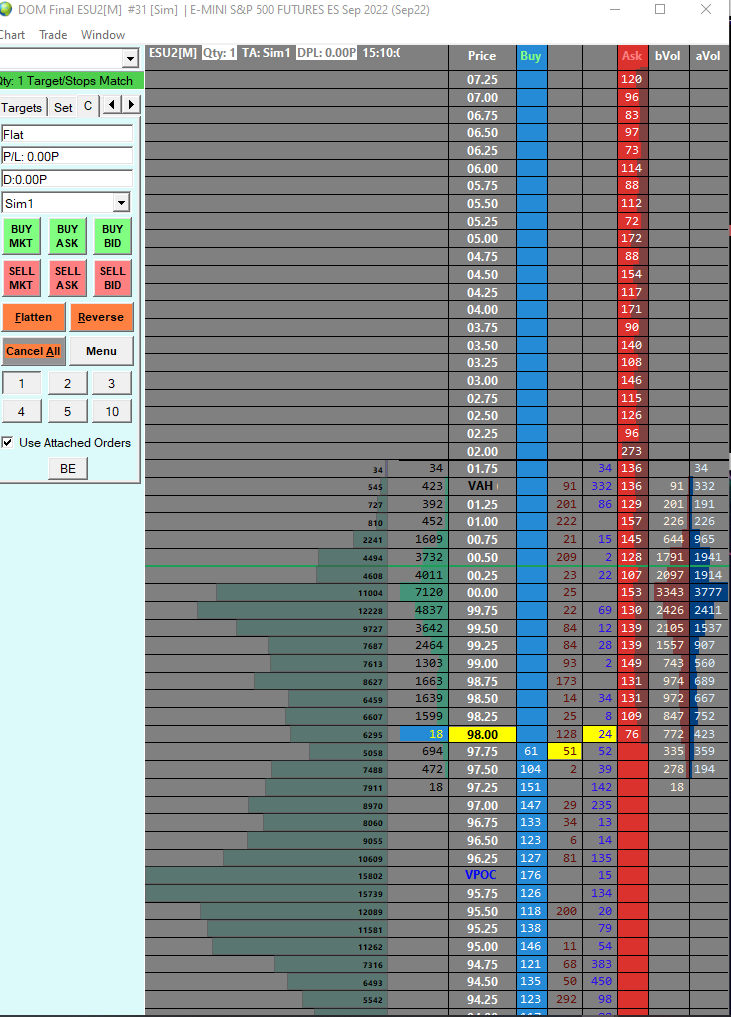 First thing is to make sure they Volume Bars are turned on for that column. Refer to the information here: Global Trade Settings Windows: Show Volume Bars (Trade >> Customize Chart/Trade DOM Columns) If the volume bars are turned on but you are not seeing them, then the next thing to check is the color of the Volume Bars and change it, if necessary to be different from the background color. Refer to the following: Customizing Fonts, Colors, Line Styles, and Widths for Chart Trading, Chart DOM, and Trade DOM: Chart DOM Bid Volume Bar And finally, it is possible that there is a very large value in the column that is forcing the rest of the numbers to essentially show a 0 volume bar. You would need move the scale to look through the rest of the data and see if this is the situation. For the most reliable, advanced, and zero cost futures order routing, use the Teton service: Sierra Chart Teton Futures Order Routing |