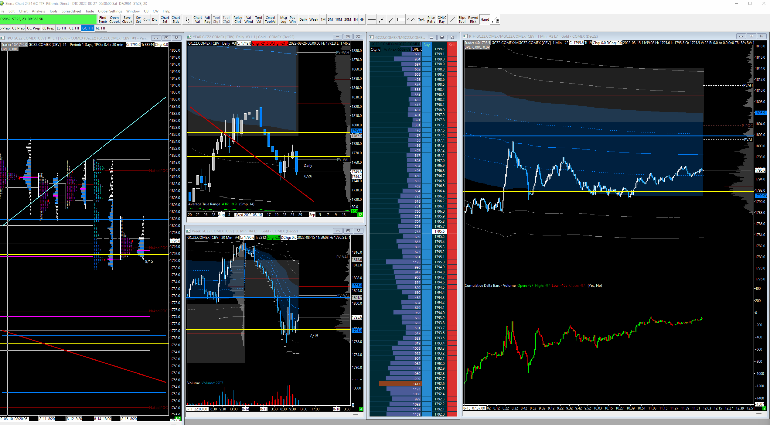 I'm assuming not getting back to me is to say that I need to accept not trading GC in Sierra? Although I know Rithmic has been having issues, this is not related to that. As I have spelled out extensively, I am not having these problems in other platforms, using Rithmic, regardless of the Data/Trade service settings I am connected to (Brokerage account or Apex Funded account). And I am not having issues with any other market in Sierra. I was able to load data from 8/15 (the point Sierra stopped loading GC) to 9/2 up until 6:45 am EST. And that was it. All I did was change the session times and hit apply. That method is not working now. Is there a next step or should I accept that you can't figure it out and move on? I've spent too much time on this specific issue and need to know if any further communication with you is a waste of our time. I can trade GC on another platform so it's not the end of the world. So as not to take up more of your time, Simple answer only: 1. Move on. OR 2. Will continue to help me fix this issue. Thank you, Thaddeus |