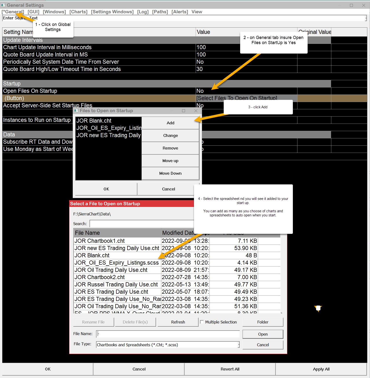 are you sure this works with Spreadsheets? I can't figure it out.. I've added several (they are all in the DATA) folder to the list of files to open at startup. but none of them actually open. I'm on 2408 Date Time Of Last Edit: 2022-09-11 10:29:06
