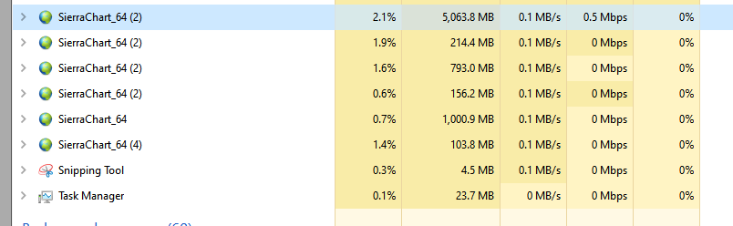 No, you cannot tell the memory usage for an individual chart. Yes the crash reporter does run in the background. It does not cause any harm. It is there in the extremely rare event we need to capture some information related to an abnormal shutdown. Sierra Chart Support - Engineering Level Your definitive source for support. Other responses are from users. Try to keep your questions brief and to the point. Be aware of support policy: https://www.sierrachart.com/index.php?l=PostingInformation.php#GeneralInformation For the most reliable, advanced, and zero cost futures order routing, use the Teton service: Sierra Chart Teton Futures Order Routing |