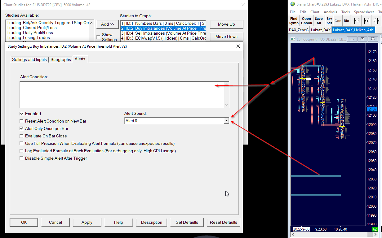 I am using Buy imbalance and sell imbalance indicators. And I would like the alert to ring...when the imbalance set in the indicator appears in the chart (300 or -300 in my case). Does it mean I should additionally put volume at price indicator and set the buy imbalance threshold? Similar to the sell imbalance?