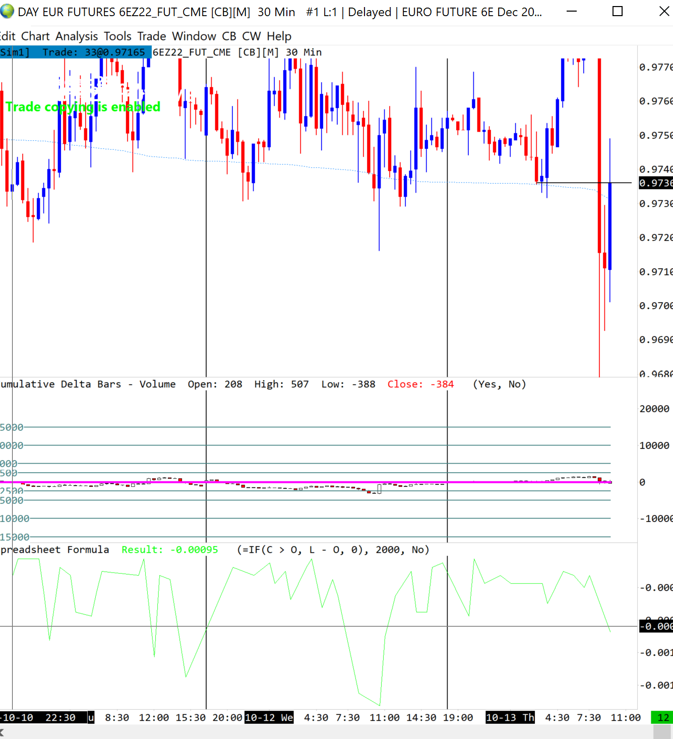 Sorry, we missed how you had your IFs nested. Here is what your formula should look like: =IF(C > O, L - O, IF(O > C, L - C, 0)) For the most reliable, advanced, and zero cost futures order routing, use the Teton service: Sierra Chart Teton Futures Order Routing |