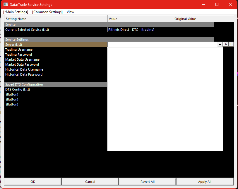 As I was going through the instruction - The "Rithmic Direct - DTC [trading]" selected did not populate a list of firms in the Server (list) as shown in the attachment. Is there anything I'm missing on for this set up? |