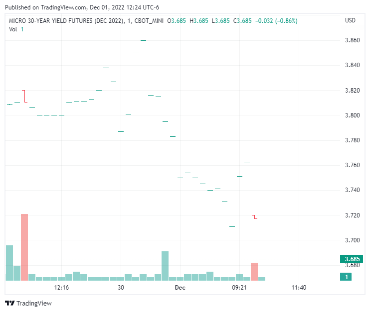 Hi, Thank you so much for your kind reply. The chart and the data which is attached is for 30 yr us treasury bonds and not the micro yield chart which you attached. The other chart I attached is from tradestation charting which I also use. And IF I may request you to kindly look at the 30yr us bond chart(dec.22 front month) then you would see that my chart data is not coming correctly. Thank you so much again....Regards....Mickey |