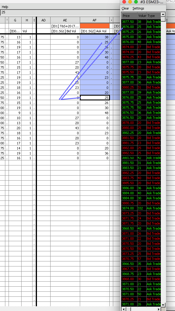 Hi there! I have a spreadsheet with the bid and ask volume by price in a configuration with volume that replicates the tape almost perfectly. The issue is that when I do a sum formula that occupies 4 or 5 ASK or BID readings, it does not recognize it because there are rows with zeros, do you know if there is any way that the program can read all the ask that appears on the line skipping the zeros? Thank you, |
