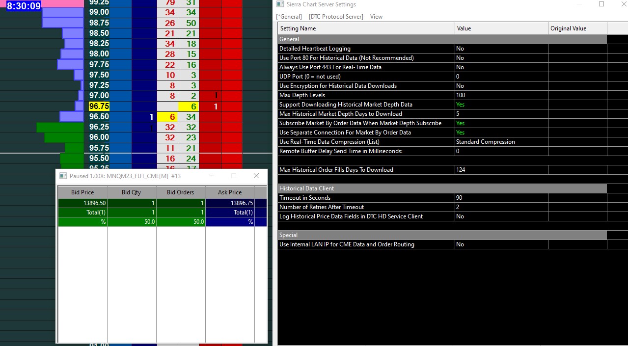 I have tried all of that without anything changing. I only get the top of the book with only 1 qty. I am on Denali with mbo data also, the sierra chart server setting are also attached in pic. I have downloaded and retried multiple times. I am only replaying todays session. What can I be doing wrong. Thanks for the help.