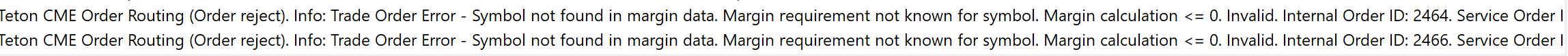 Hi John, I have been trading micro crude fine for the last 10 months no problem, and then now im getting this error message. (attached) Looks like teton isnt recoginizing the symbol. Any Idea what I need to do? thanks Jo |