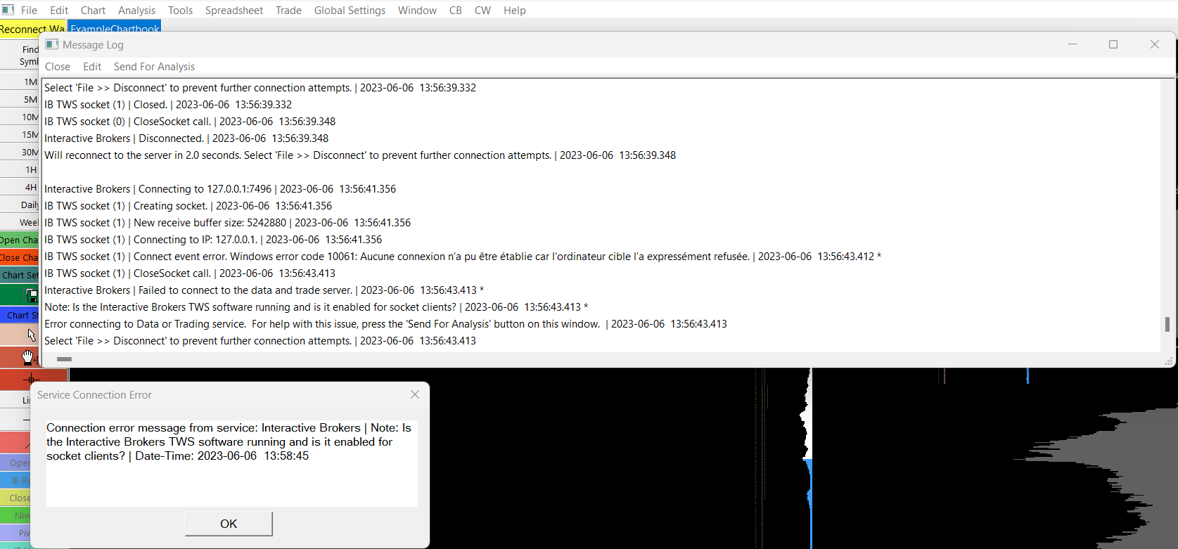Hello, I currently use your Denali services for providing market data feeds, not interactive brokers, however I got a pop up message occuring at the opening of Sierra asking me to connect the their TWS and can not resolve this until I open it. Please help thank you Regards Baptiste Date Time Of Last Edit: 2023-06-03 12:47:25