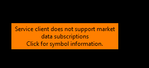 Sierra_Chart Engineering, Thank you for your help. I deleted and re-created the symbols. When I go to open a chart with the new symbol, I get this orange message: “Service client does not support market data subscriptions Click for symbol information.” My “Data/Trade Service Settings”: “Trading Evaluator [trading]” Do I need to purchase a higher-level Sierra Chart subscription? I’ve attached screenshots and the Message Log. Thank you again for your help, I appreciate it. --- Message Log --- Software version: 2524 64-bit | 2023-07-18 13:58:09.026 Primary Thread ID: 13416 | 2023-07-18 13:58:09.026 Usage end date: 2023-07-28 | 2023-07-18 13:58:09.026 Enabled for: Advanced Features 2. | 2023-07-18 13:58:09.026 Enabled for: Sierra Chart Historical Data Service. | 2023-07-18 13:58:09.026 Enabled for: Denali Real-Time Exchange Data Feed. | 2023-07-18 13:58:09.026 Enabled for: Delayed Denali Exchange Data Feed. | 2023-07-18 13:58:09.026 Enabled for exchange2: CME | 2023-07-18 13:58:09.026 Enabled for exchange2: CBOT | 2023-07-18 13:58:09.026 Enabled for exchange2: fairx_exchange.data | 2023-07-18 13:58:09.026 Allow Support for Sierra Chart Data Feeds is enabled. | 2023-07-18 13:58:09.026 Current selected Data/Trading service: Trading Evaluator | 2023-07-18 13:58:09.026 Custom symbol settings values: enabled | 2023-07-18 13:58:09.026 Chart Update Interval: 500 | 2023-07-18 13:58:09.026 Intraday Data Storage Time Unit: 0 | 2023-07-18 13:58:09.026 Time Zone: -04:00:00 (EST-05EDT+01,M3.2.0/02:00,M11.1.0/02:00) | 2023-07-18 13:58:09.026 2023-07-18 17:58:09 Local computer time in UTC | 2023-07-18 13:58:09.026 2023-07-18 13:58:09 Local computer time in SC Time Zone | 2023-07-18 13:58:09.026 2023-07-18 16:42:54 Server time in UTC | 2023-07-18 13:58:09.026 Local computer UTC time and Server UTC time difference: 0 seconds. | 2023-07-18 13:58:09.026 Program path: C:\Sierra_Charts\ | 2023-07-18 13:58:09.026 Data Files path: C:\Sierra_Charts\Data\ | 2023-07-18 13:58:09.026 OS Version Number: 10.0 | 2023-07-18 13:58:09.026 Locale Setting: C | 2023-07-18 13:58:09.026 DLLs: HubertSenters_Bond_Reversal_Trade_64.dll, HubertSenters_Bond_Sneak_Attack_64.dll, HubertSenters_IchimokuSignals_64.dll, UserContributedStudies_64.dll, Zyp Discord_64.dll, Zyp Free by Zyp_64.dll, Zyp OrderFlow by Zdislav_64.dll, Zyp Trade_Your_Plan_64.dll | 2023-07-18 13:58:09.027 Allowed protected custom studies: zyp_app | 2023-07-18 13:58:09.027 Crash reporter started: true | 2023-07-18 13:58:09.027 Trading Evaluator | Connecting to the server tradesimulation2.sierracharts.com. Port 11096 | 2023-07-18 13:58:23.814 DTC Client socket (1) | Creating socket. Using TLS 1.2. | 2023-07-18 13:58:23.815 DTC Client socket (1) | New receive buffer size: 0 | 2023-07-18 13:58:23.815 DTC Client socket (1) | Connecting to IP: 142.215.17.188. | 2023-07-18 13:58:23.815 Trading Evaluator | Network connection to server complete. | 2023-07-18 13:58:23.866 Trading Evaluator | Starting socket receive thread. | 2023-07-18 13:58:23.866 Trading Evaluator | Sending encoding request to server: Binary VLS. Compression: none | 2023-07-18 13:58:23.866 Trading Evaluator | Setting DTC encoding to Binary VLS | 2023-07-18 13:58:24.018 Trading Evaluator | Sending logon request message. | 2023-07-18 13:58:24.018 Trading Evaluator | Received logon response. | 2023-07-18 13:58:24.611 Trading Evaluator | Server Name: SC DTC Server. Build=46374. | 2023-07-18 13:58:24.611 Trading Evaluator | Server protocol version: 8. Client protocol version: 8 | 2023-07-18 13:58:24.611 Trading Evaluator | Successfully connected. Connected to SC DTC Protocol server. Service=tradesimulation.dtctrading|SymbolSettings=tradingevaluatorserver.dtctrading. | 2023-07-18 13:58:24.611 Trading Evaluator | Trading is supported. | 2023-07-18 13:58:24.611 Trading Evaluator | Order cancel and replace is supported. | 2023-07-18 13:58:24.611 Trading Evaluator | OCO Orders supported. | 2023-07-18 13:58:24.611 Trading Evaluator | Bracket Orders supported. | 2023-07-18 13:58:24.611 Trading Evaluator | Connected to server complete. | 2023-07-18 13:58:24.611 Triggering next historical data download in queue. | 2023-07-18 13:58:24.612 Trading Evaluator | Performing query for most recent Order Activity Date-Time. | 2023-07-18 13:58:24.616 No download requests in the queue to start downloads for. | 2023-07-18 13:58:24.616 Trading Evaluator | Requesting historical order activity from server. Start date-time UTC: 2023-07-05 20:56:18.685638 | 2023-07-18 13:58:24.667 Trading Evaluator | Received final trade activity snapshot. Count=1. No data. TradeAccount=CAG_SIM-Acct1 | 2023-07-18 13:58:24.728 Using symbol data fast lookup vector | 2023-07-18 13:58:24.878 SC DTC Data with Market Depth | Starting real-time market data updates for: NVOL-SP. ID: 1 Service code: statscalc | 2023-07-18 13:58:24.878 SC DTC Data with Market Depth | Connecting to the server ds13-2.sierracharts.com. Port 10048 | 2023-07-18 13:58:24.878 SC DTC Data with Market Depth | Requesting security definition data for: NVOL-SP. ID: 1 | 2023-07-18 13:58:24.878 Added historical Intraday data request for NVOL-SP to the queue. | 2023-07-18 13:58:24.878 Intraday data recording state for symbol NVOL-SP is set to download 'Pending'. | 2023-07-18 13:58:24.878 Triggering next historical data download in queue. | 2023-07-18 13:58:24.878 DTC Client socket (2) | Creating socket. | 2023-07-18 13:58:24.879 DTC Client socket (2) | New receive buffer size: 0 | 2023-07-18 13:58:24.879 DTC Client socket (2) | Connecting to IP: 162.251.232.245. | 2023-07-18 13:58:24.879 Delaying start of download for NVOL-SP. | 2023-07-18 13:58:24.882 SC DTC Data with Market Depth | Starting real-time market data updates for: TRIN-NYSE. ID: 2 Service code: statscalc | 2023-07-18 13:58:24.908 SC DTC Data with Market Depth | Requesting security definition data for: TRIN-NYSE. ID: 2 | 2023-07-18 13:58:24.908 Added historical Intraday data request for TRIN-NYSE to the queue. | 2023-07-