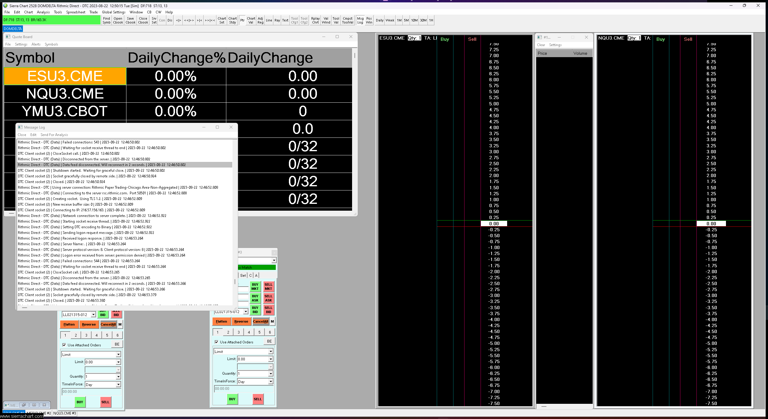 Refer to the following: Rithmic Trading Platform Service: Permission Denied Resolution Procedure For the most reliable, advanced, and zero cost futures order routing, use the Teton service: Sierra Chart Teton Futures Order Routing |