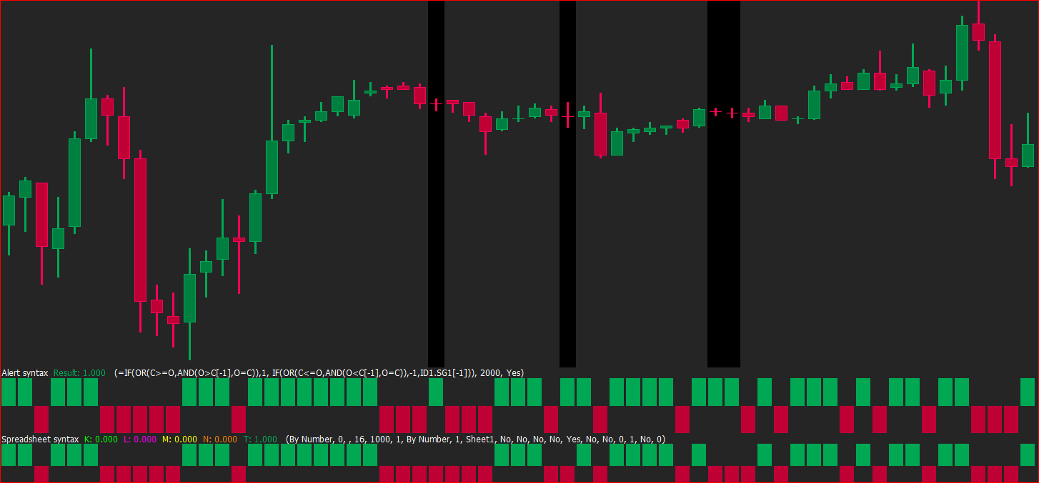 Spreadsheet syntax vs Alert syntax for price bar colors