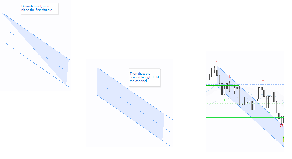 I have been doing this for a while, so thought I would pass it along. Two triangles can be used to create back colored highlighted channels. See attached example channel.